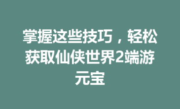 掌握这些技巧,轻松获取仙侠世界2端游元宝