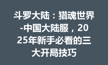 斗罗大陆:猎魂世界-中国大陆服,2025年新手必看的三大开局技巧