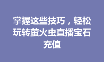文章目录▼CloseOpen 在萤火虫直播里充值宝石,最安全可靠的方式是什么? 怎么充值宝石最划算?有没有省钱的技巧? …