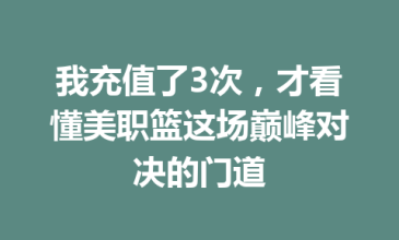我充值了3次,才看懂美职篮这场巅峰对决的门道